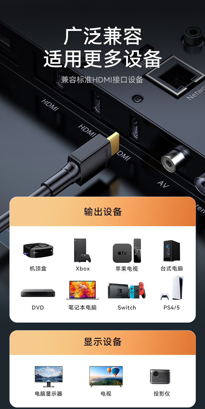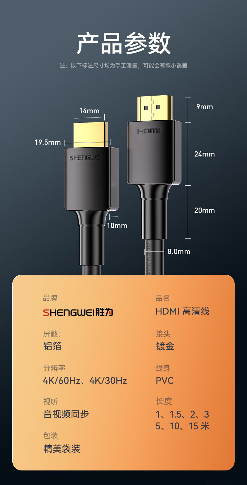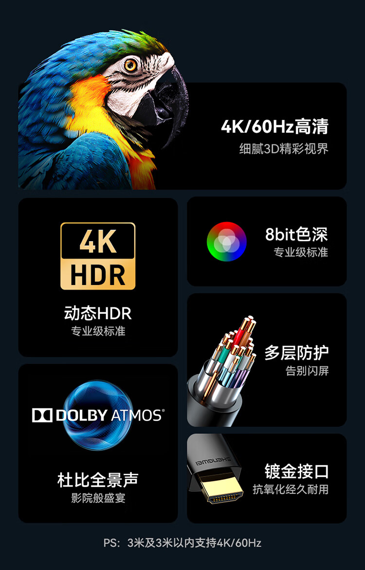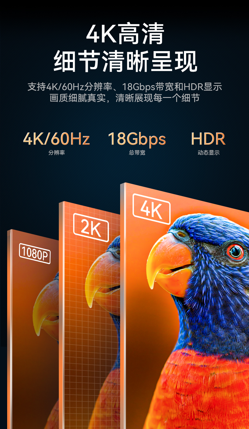 HDMI線2.0版電腦電視4K高清線 3D視頻線 勝為機(jī)頂盒投影儀顯示器連接線1米 AHH3010G