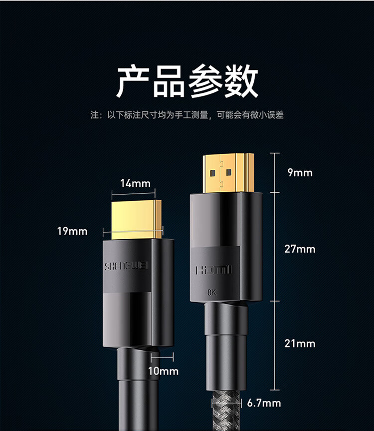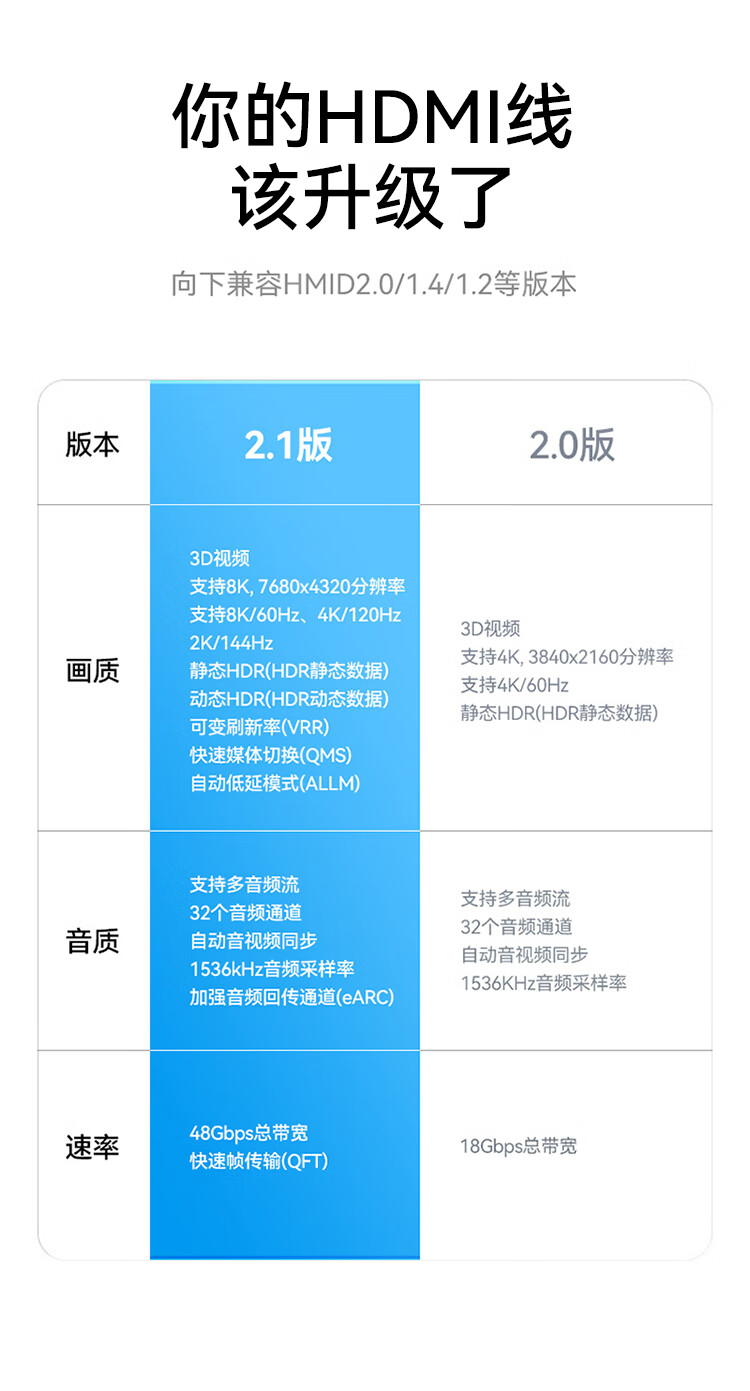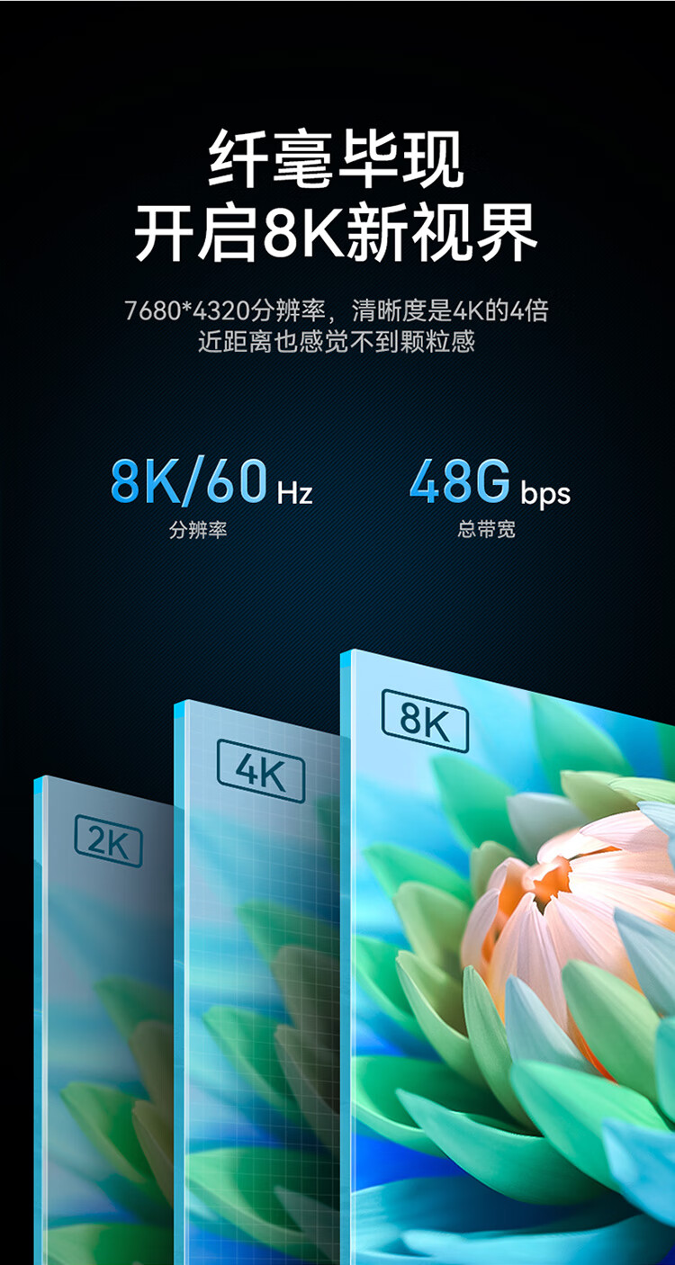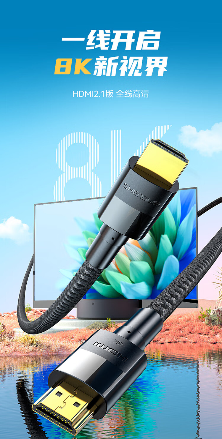 HDMI線2.1版 8K60Hz 4K120Hz 筆記本電腦機(jī)頂盒顯示器投影儀視頻連接線 1米AHH4010G