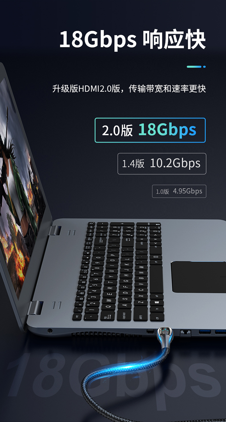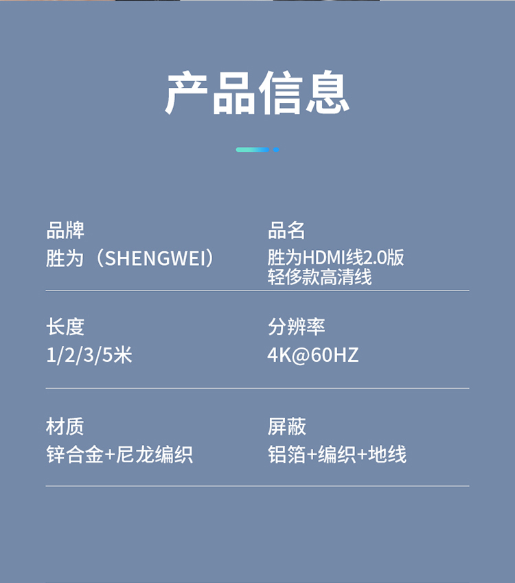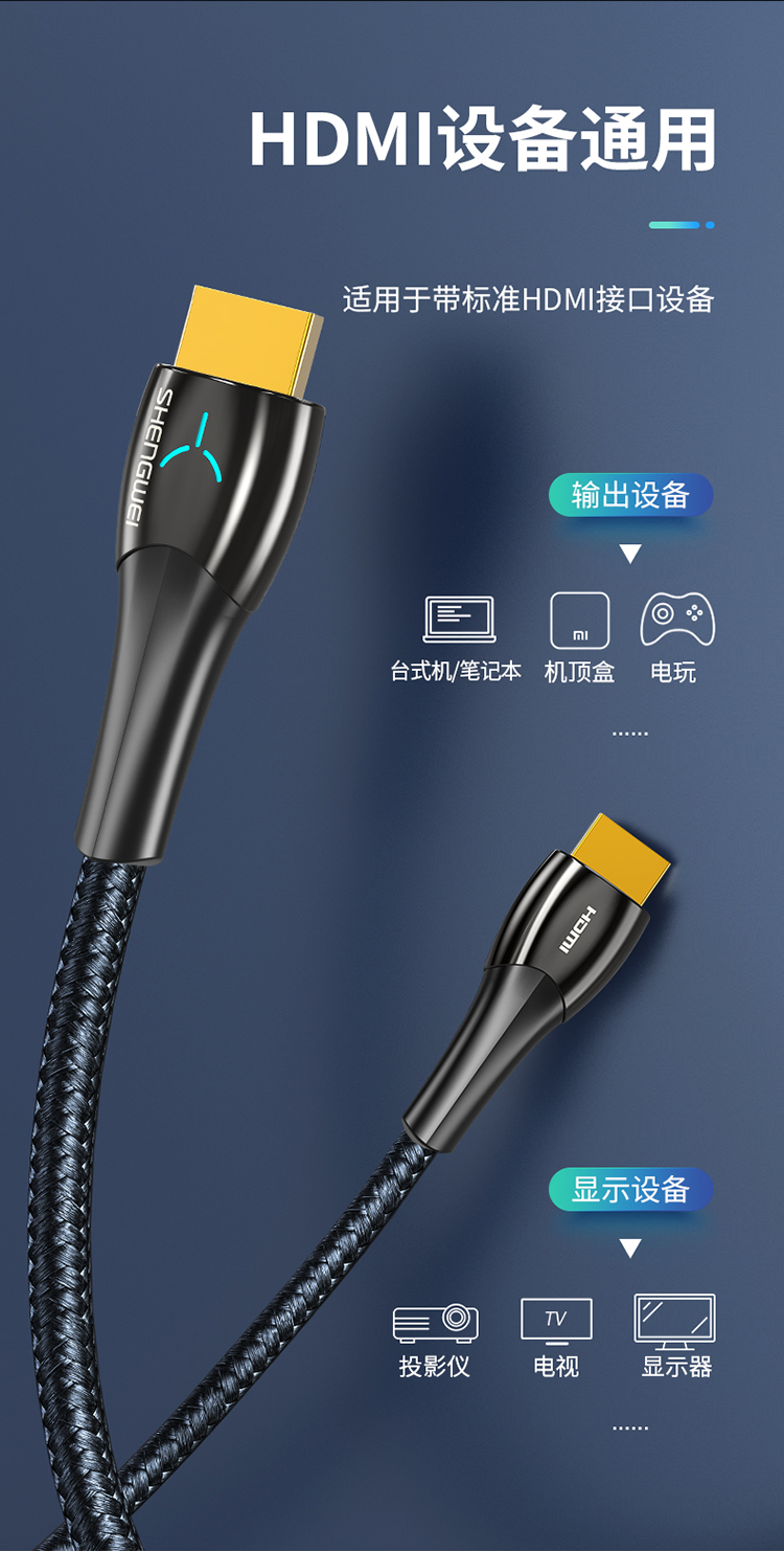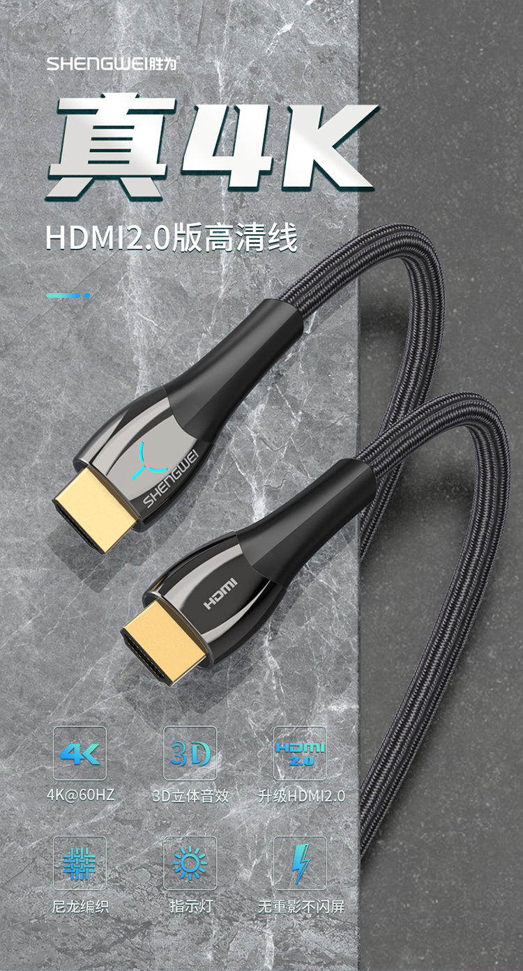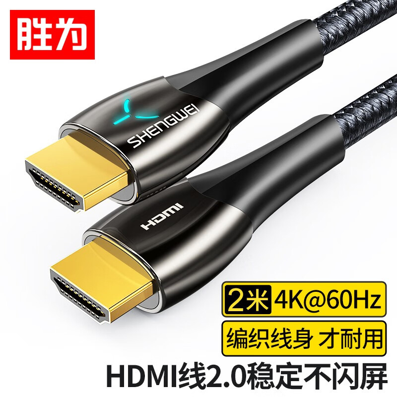 HDMI線4K/60Hz高清線湖光藍燈顯視頻線 勝為 電腦電視顯示器連接線 2米 AHC0020G