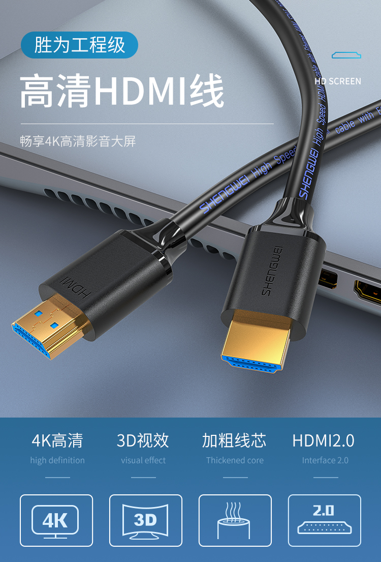 HDMI線(xiàn)2.0版 4k數(shù)字高清線(xiàn)3D視頻線(xiàn) 勝為電腦機(jī)頂盒連接電視投影儀顯示器數(shù)據(jù)線(xiàn) 2米 HC-9020B