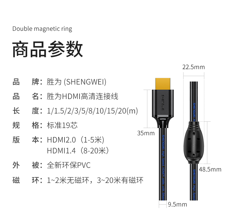 規(guī)格:標(biāo)準(zhǔn)19芯;HDMI2.0