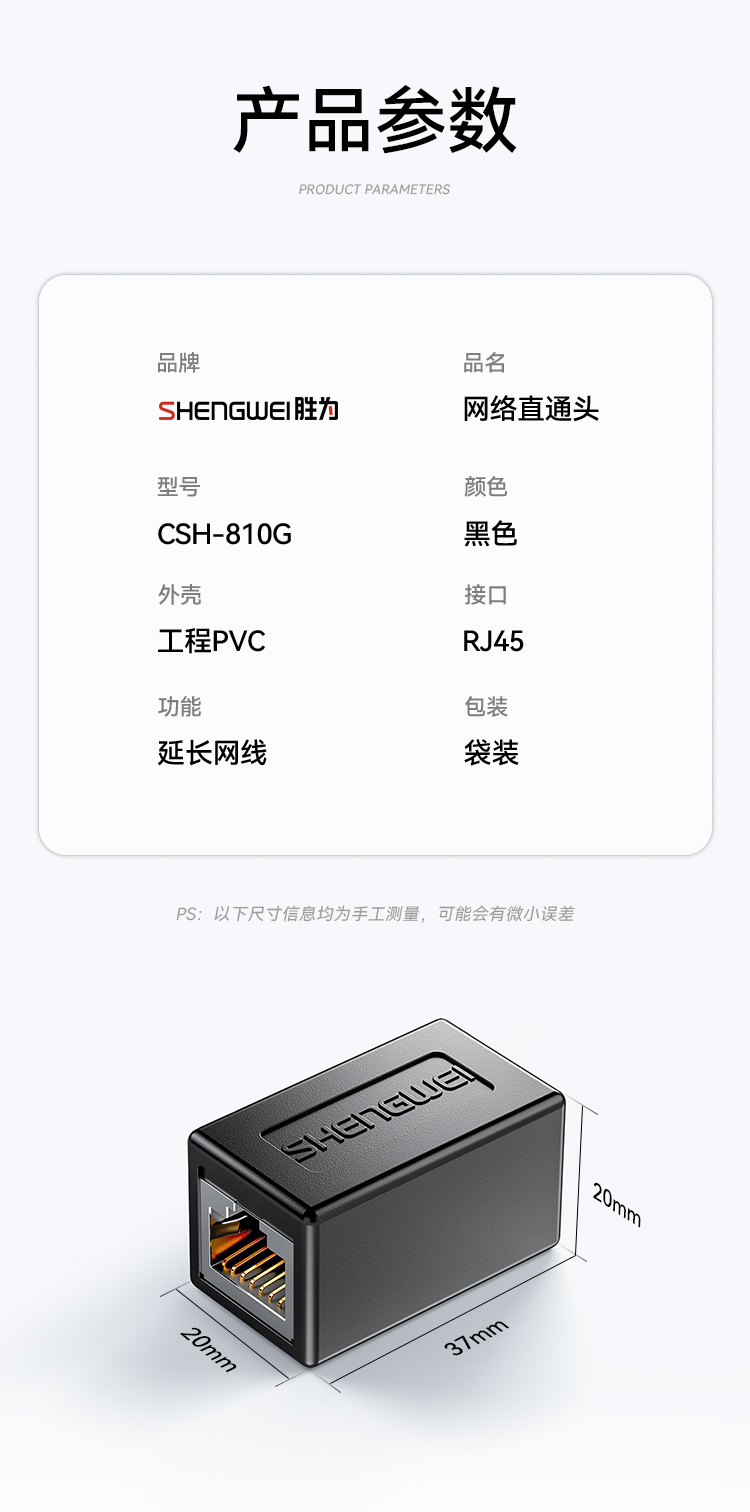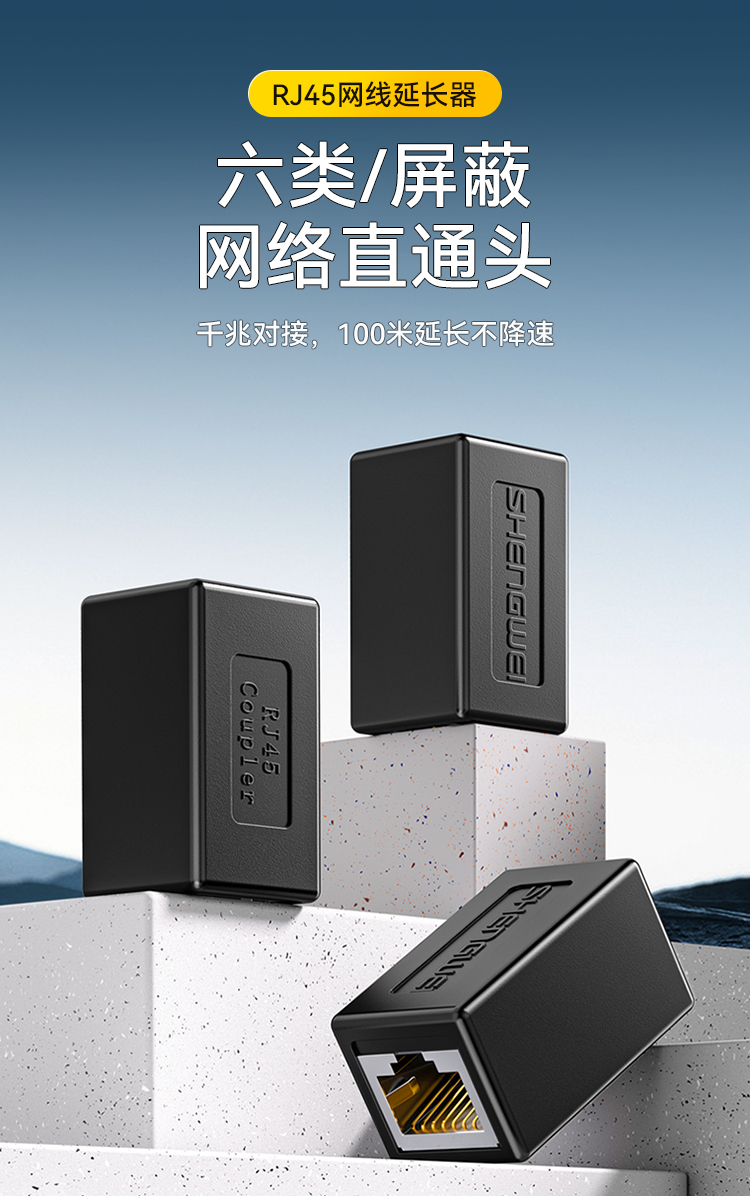 網(wǎng)線轉(zhuǎn)接頭 千兆屏蔽網(wǎng)絡(luò)延長(zhǎng)連接器 勝為RJ45網(wǎng)線直通頭水晶頭雙通頭5/6類網(wǎng)線通用 黑 CSH-810G