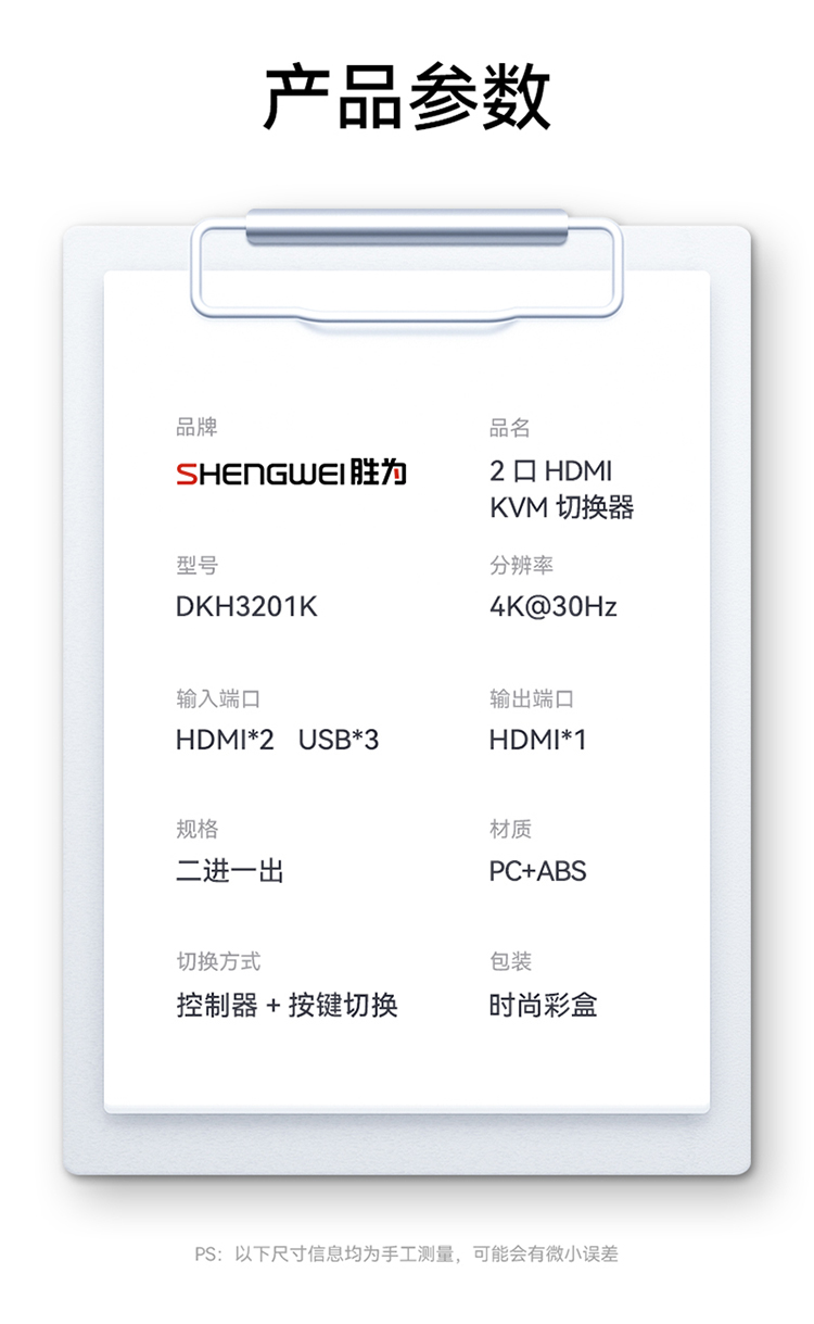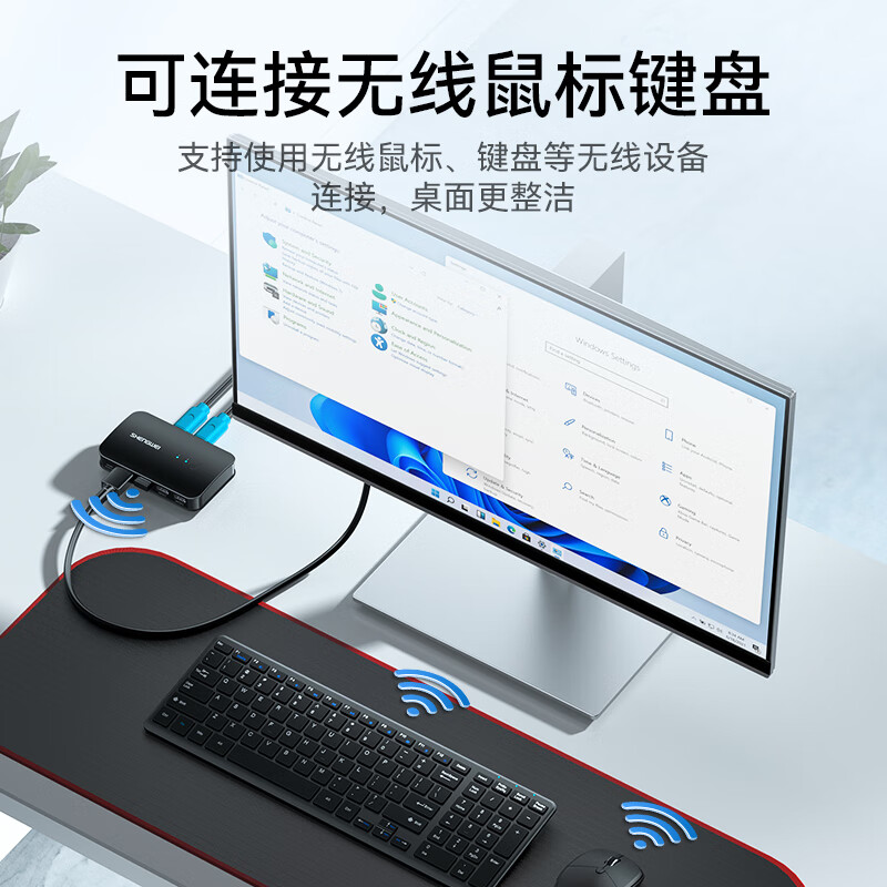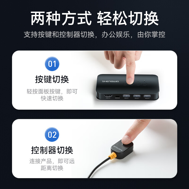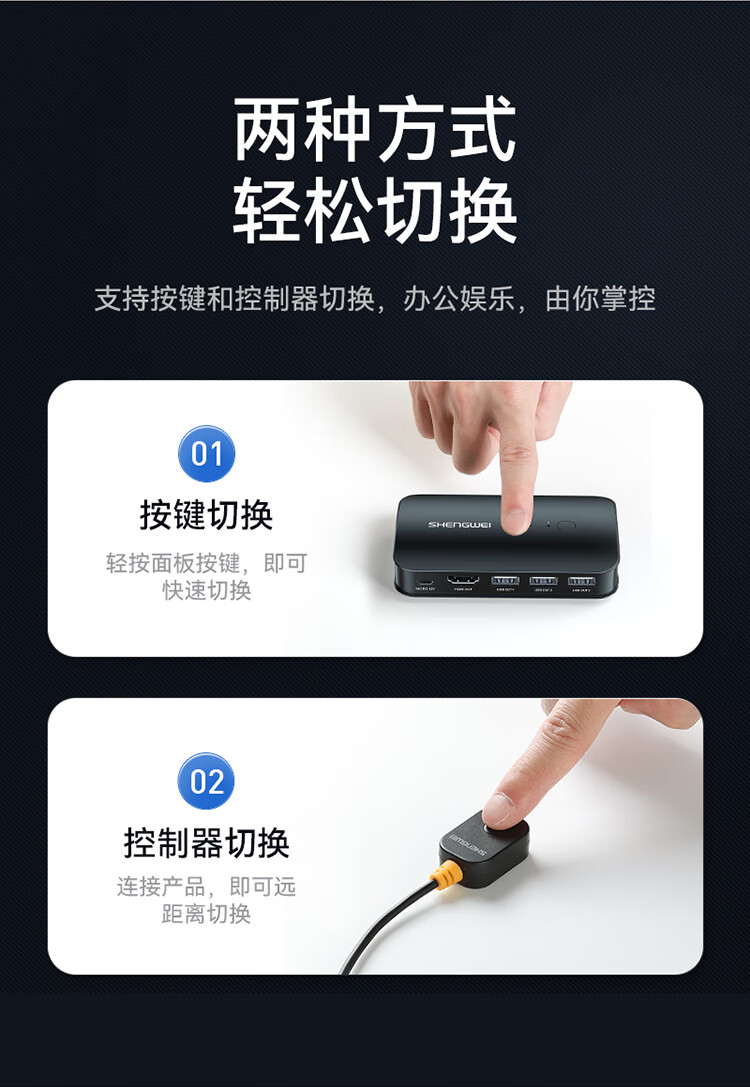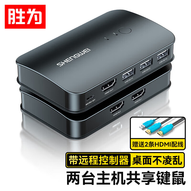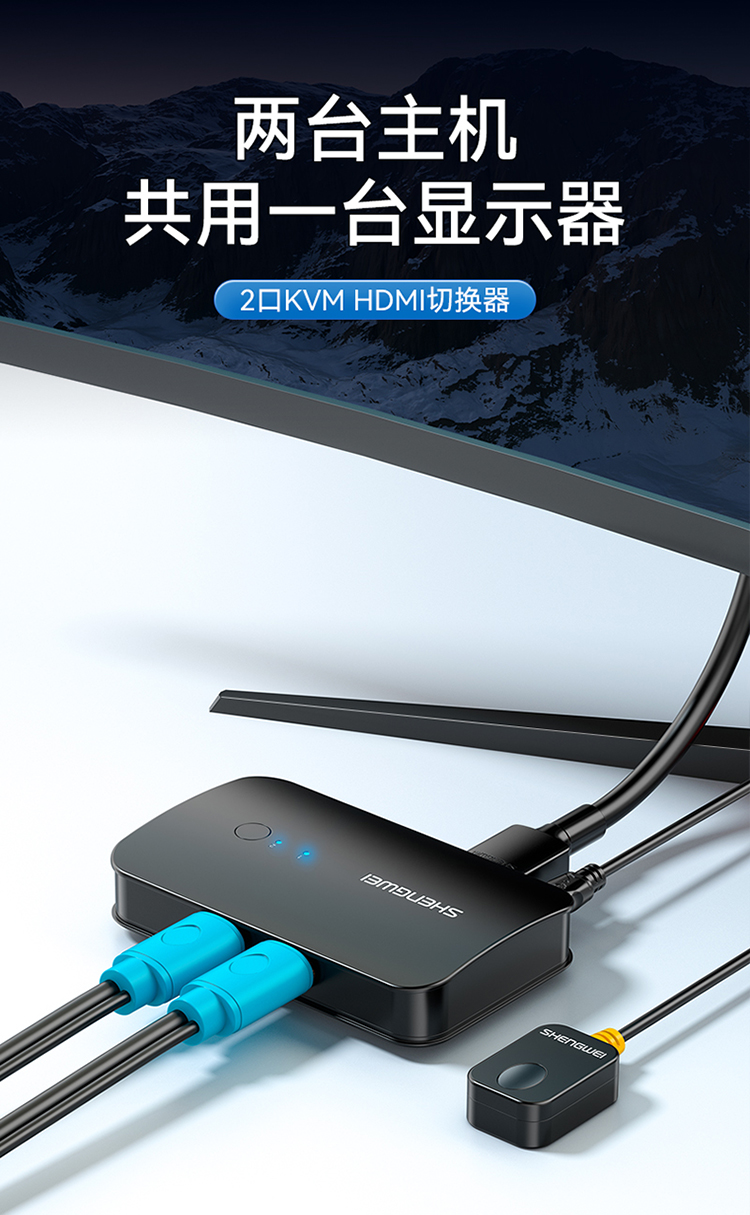 KVM切換器二進(jìn)一出hdmi切屏器配線 2進(jìn)1出 勝為2口顯示器鍵鼠USB打印機(jī)共享器 DKH3201K