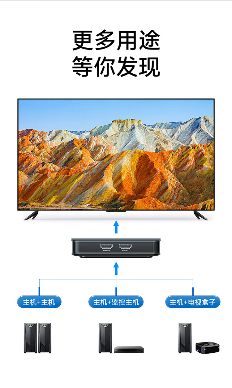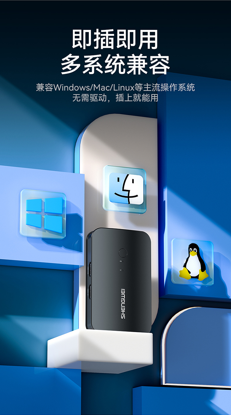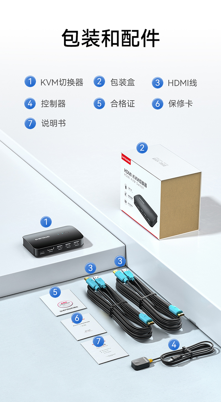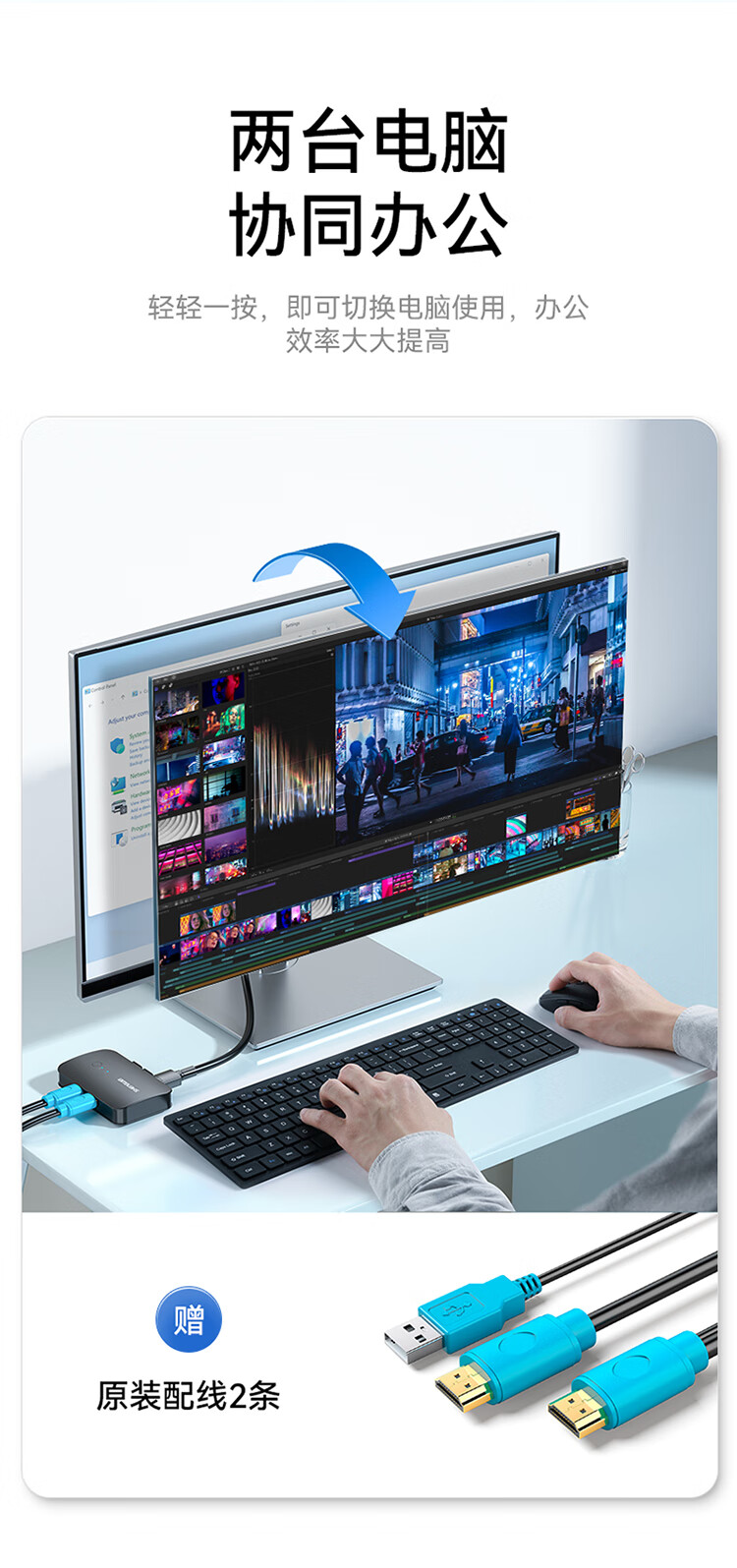 KVM切換器二進(jìn)一出hdmi切屏器配線 2進(jìn)1出 勝為2口顯示器鍵鼠USB打印機(jī)共享器 DKH3201K