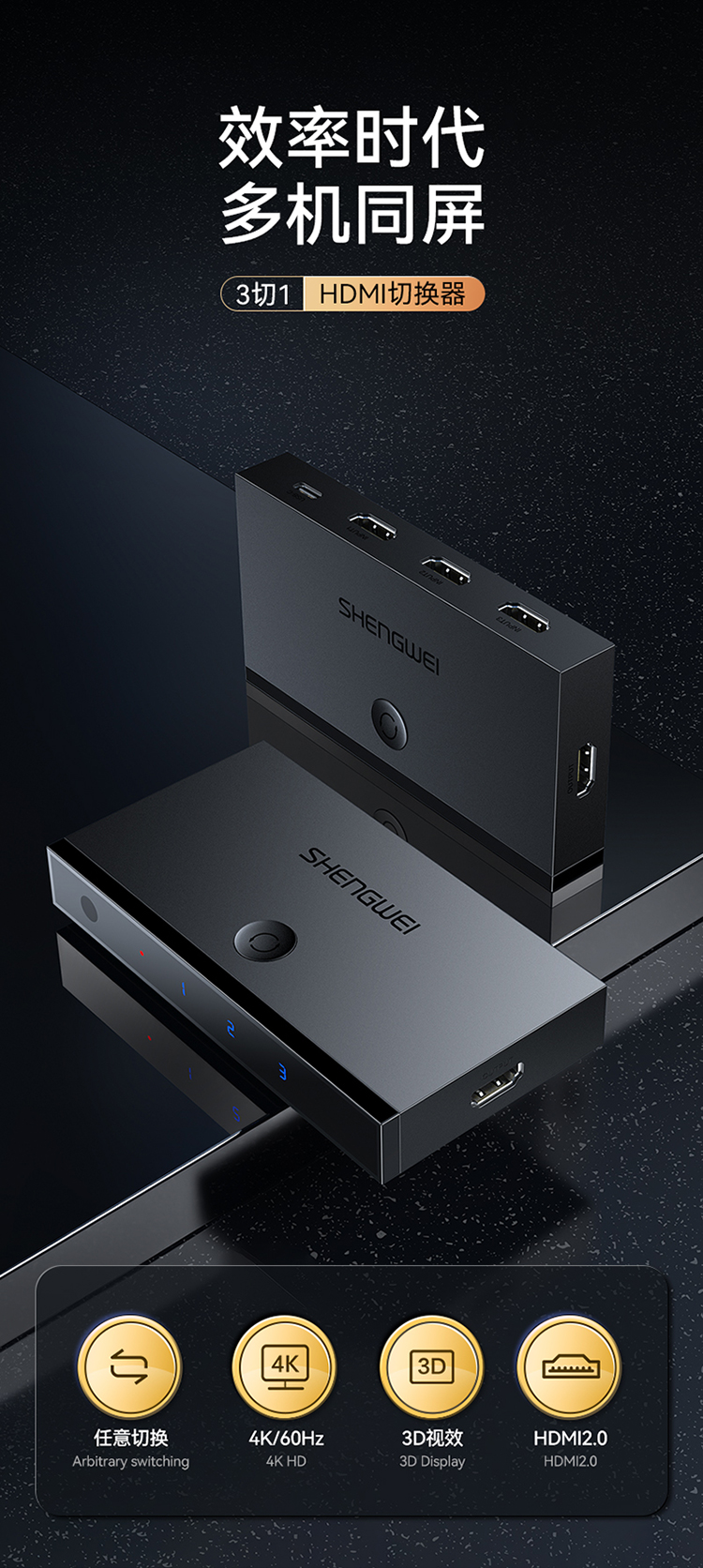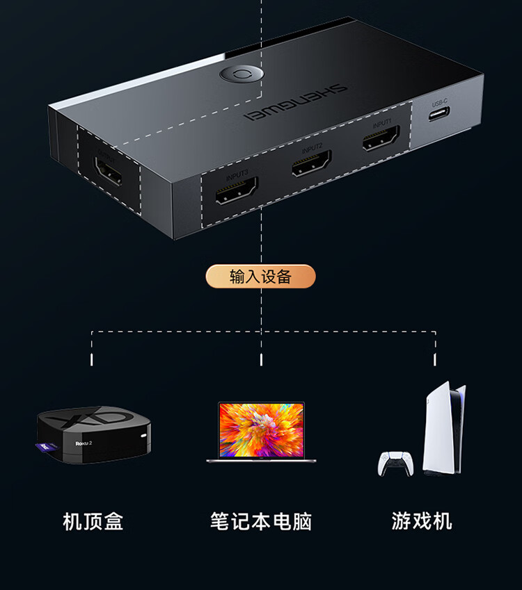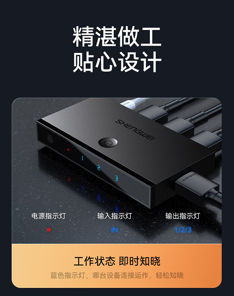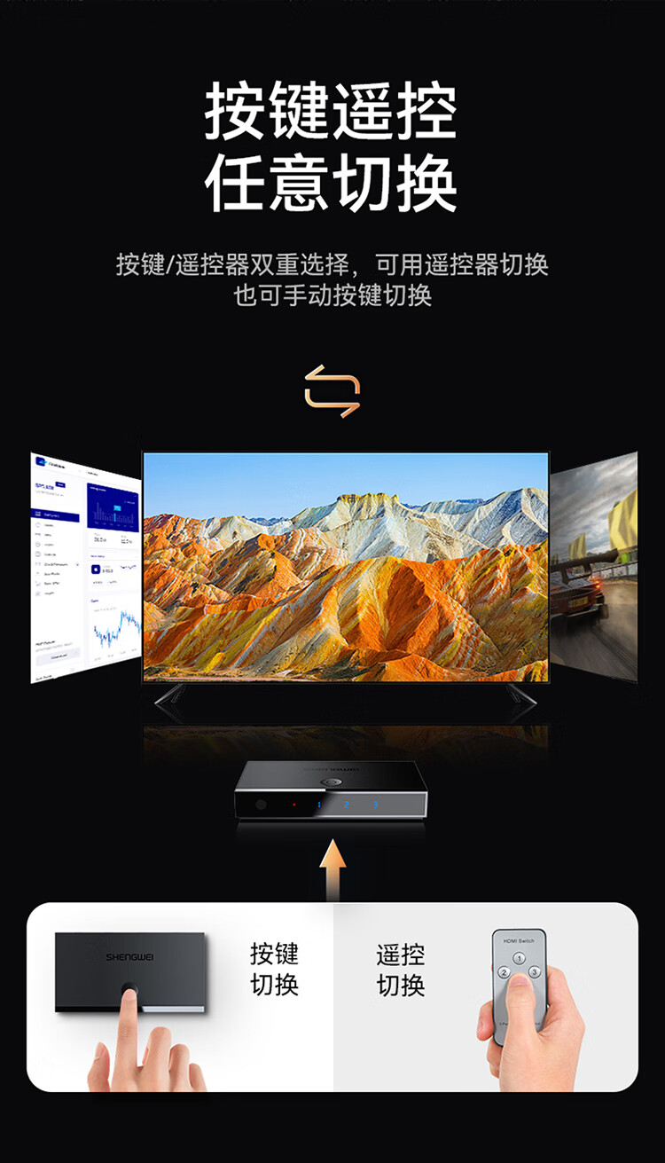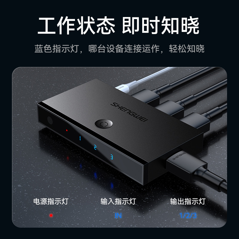 HDMI切換器2.0版3進(jìn)1出 三進(jìn)一出4K/60Hz高清視頻切屏器 筆記本電腦智能盒子接電視投影儀 DHD2301G