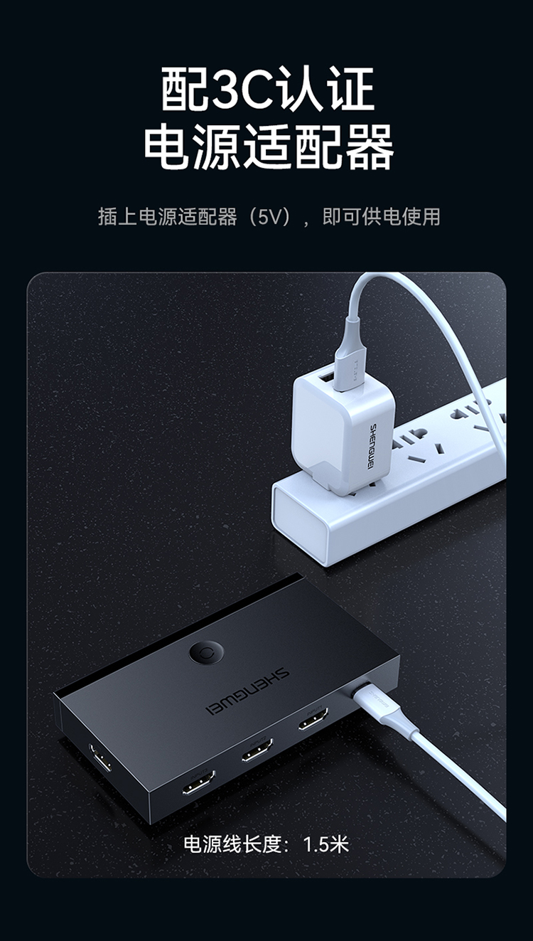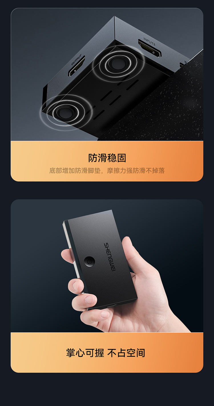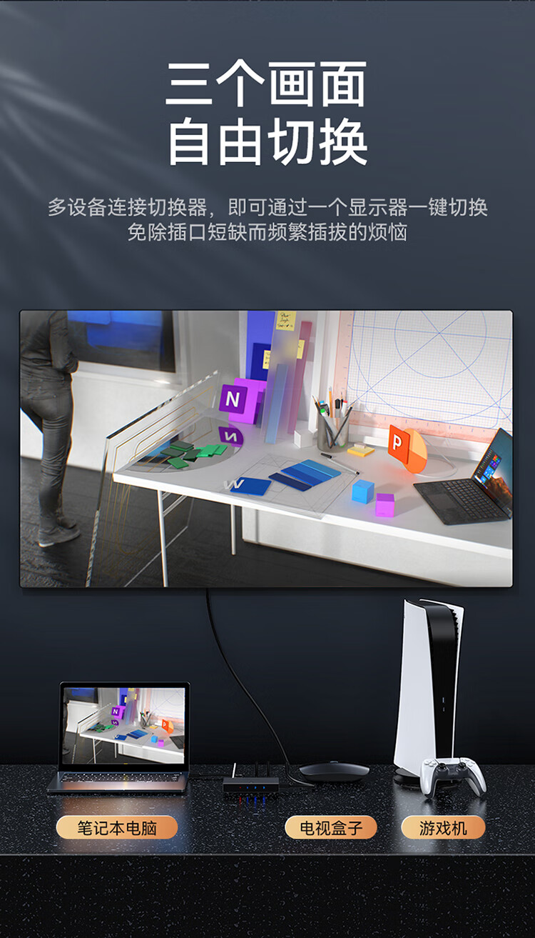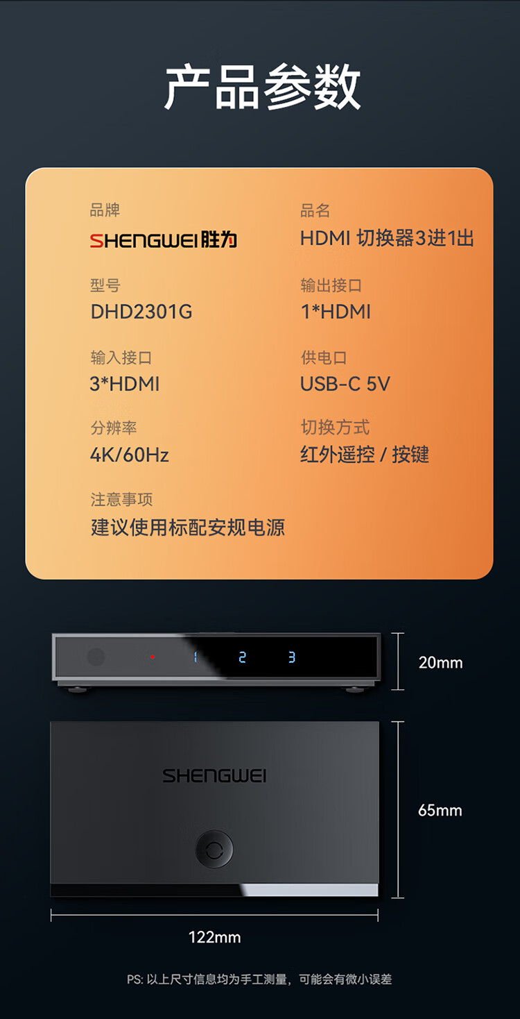 HDMI切換器2.0版3進(jìn)1出 三進(jìn)一出4K/60Hz高清視頻切屏器 筆記本電腦智能盒子接電視投影儀 DHD2301G