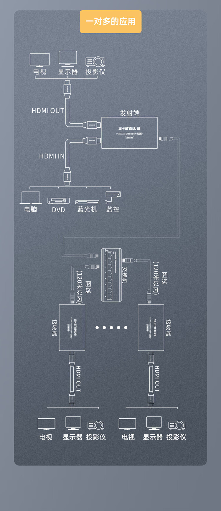 HDMI網(wǎng)絡(luò)延長器發(fā)射器 RJ45網(wǎng)線傳輸高清HDMI 120米單網(wǎng)線傳輸信號發(fā)射器 勝為DH2120A