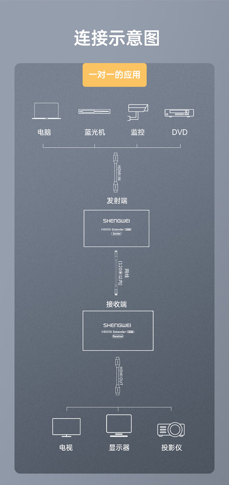 HDMI網(wǎng)絡延長器 RJ45網(wǎng)線傳輸高清HDMI 120米網(wǎng)線延伸信號放大器 一對 勝為DH2120AB