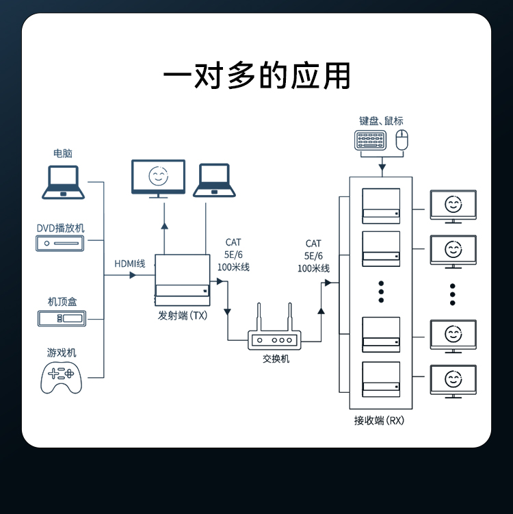 HDMI延長器200米 HDMI轉(zhuǎn)RJ45網(wǎng)口轉(zhuǎn)換器 KVM鍵鼠遠(yuǎn)程控制信號放大器 勝為 DH2200B