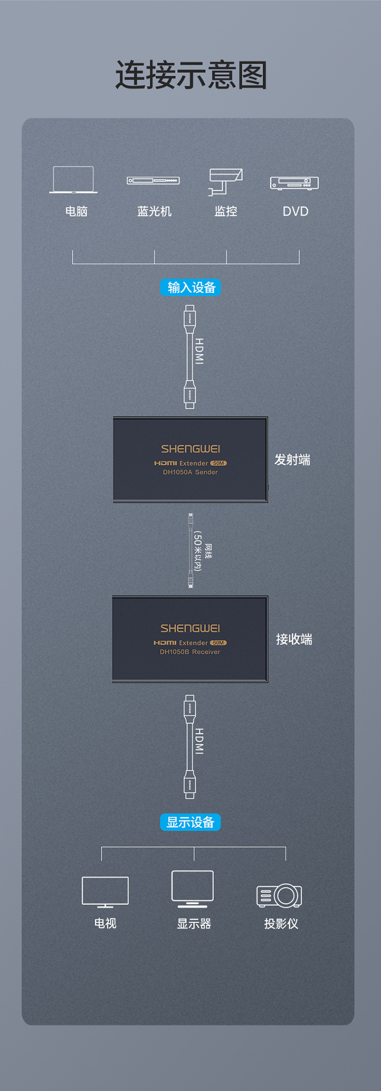 HDMI延長器50米 HDMI轉(zhuǎn)RJ45網(wǎng)口轉(zhuǎn)換器 單網(wǎng)線網(wǎng)絡(luò)高清傳輸信號放大器 一對 勝為 DH1050AB