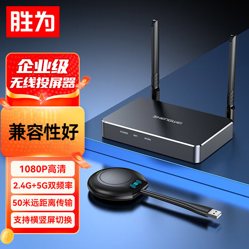 勝為無線投屏器 HDMI高清會議傳輸器 二分屏 投影儀套裝 DHU002AB