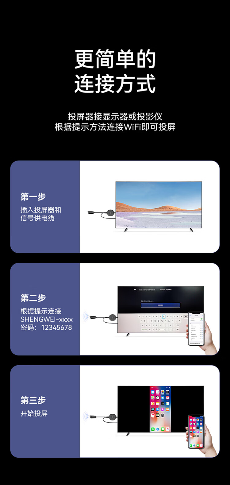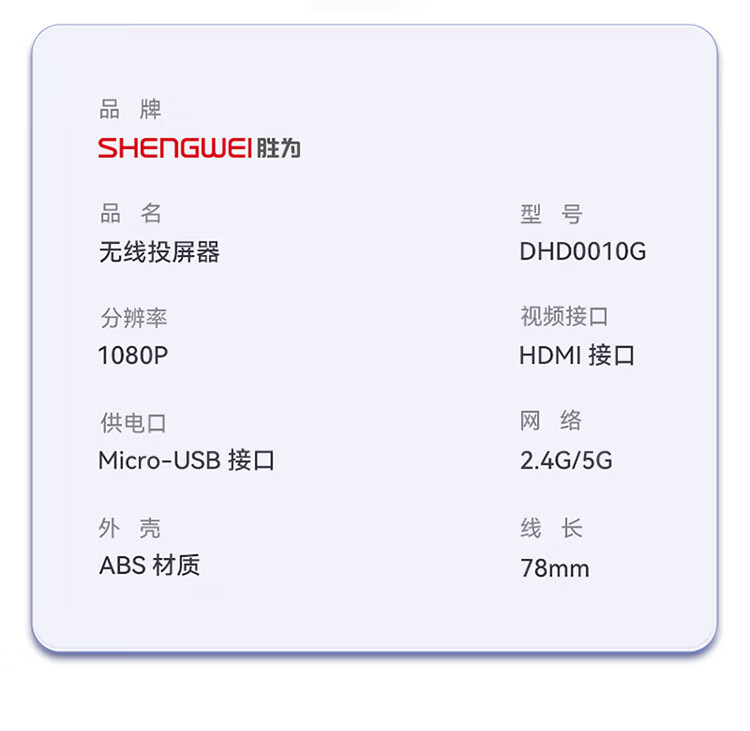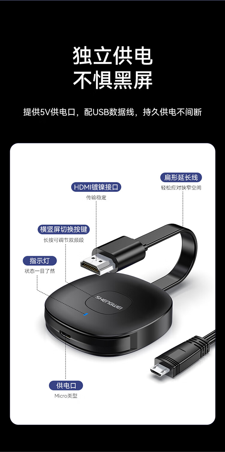 勝為 手機無線投屏器5G+2.4雙頻傳輸協(xié)議音視頻同屏器 DHD0010G