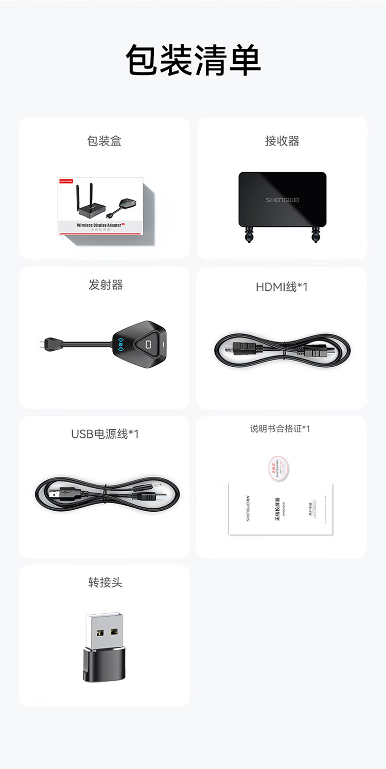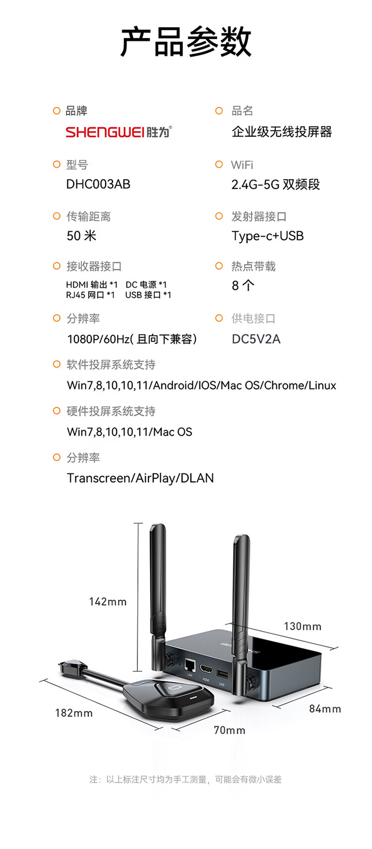 企業(yè)級(jí)無(wú)線投屏器 高清傳輸器投影儀顯示器會(huì)議套裝 勝為 DHC003AB
