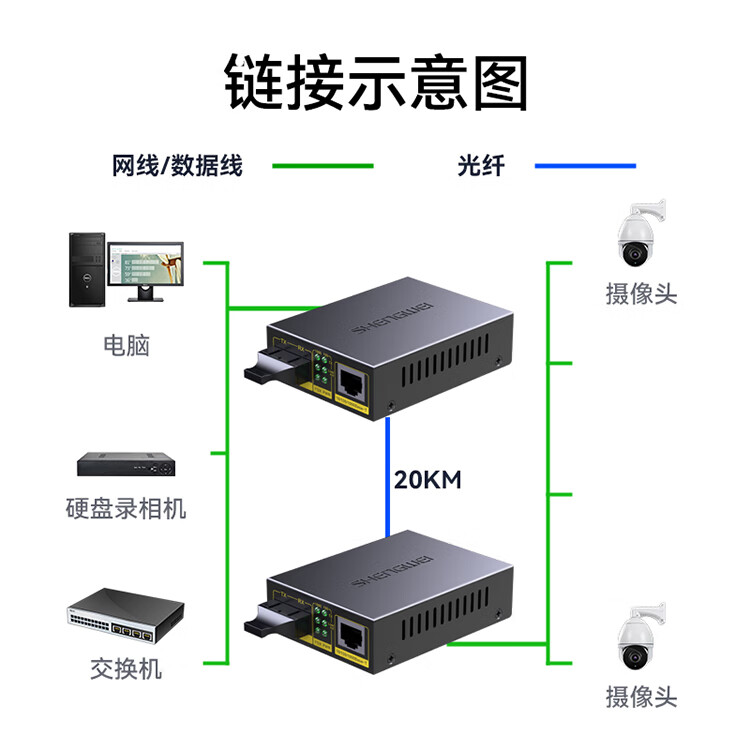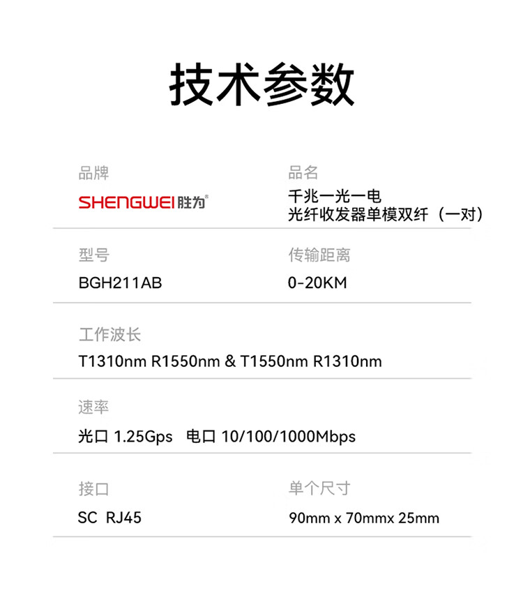 1光1電?千兆單模雙纖 一對(duì)裝 ?勝為SC口??光纖收發(fā)器 20KM BGH211AB