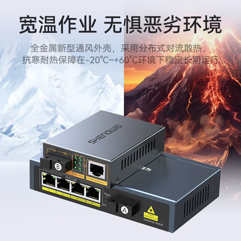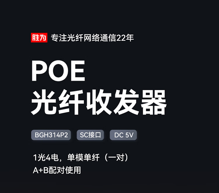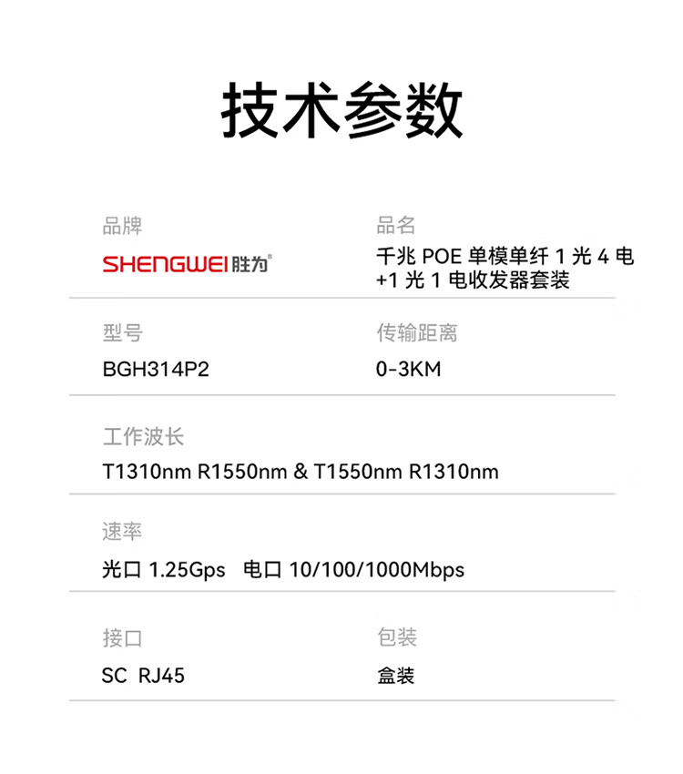 1光4電單模單纖一對裝 POE千兆勝為SC光纖收發(fā)器 3Km BGH314P2