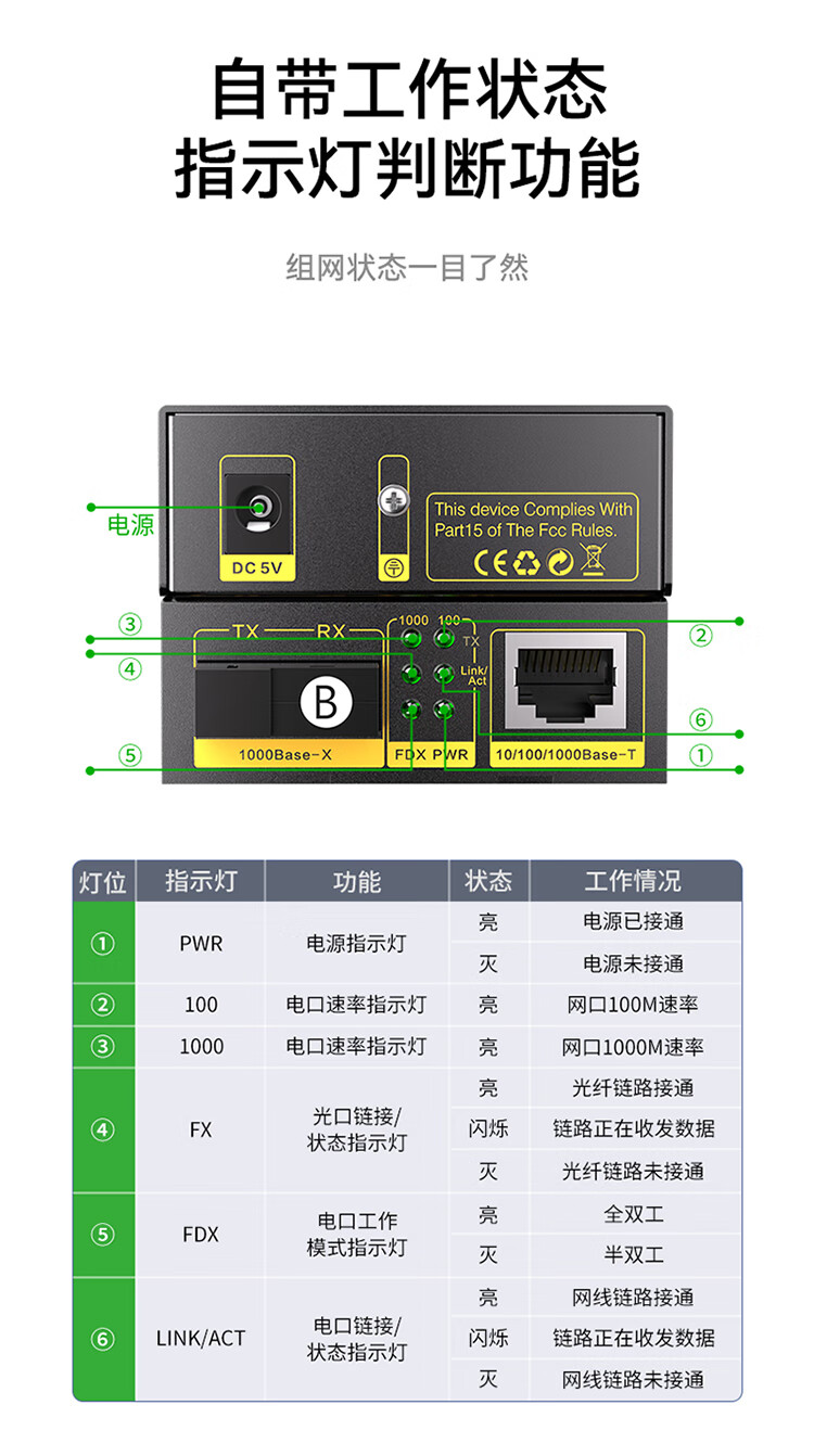 速率:光口1.25Gps;電口10/100/1000Mbps