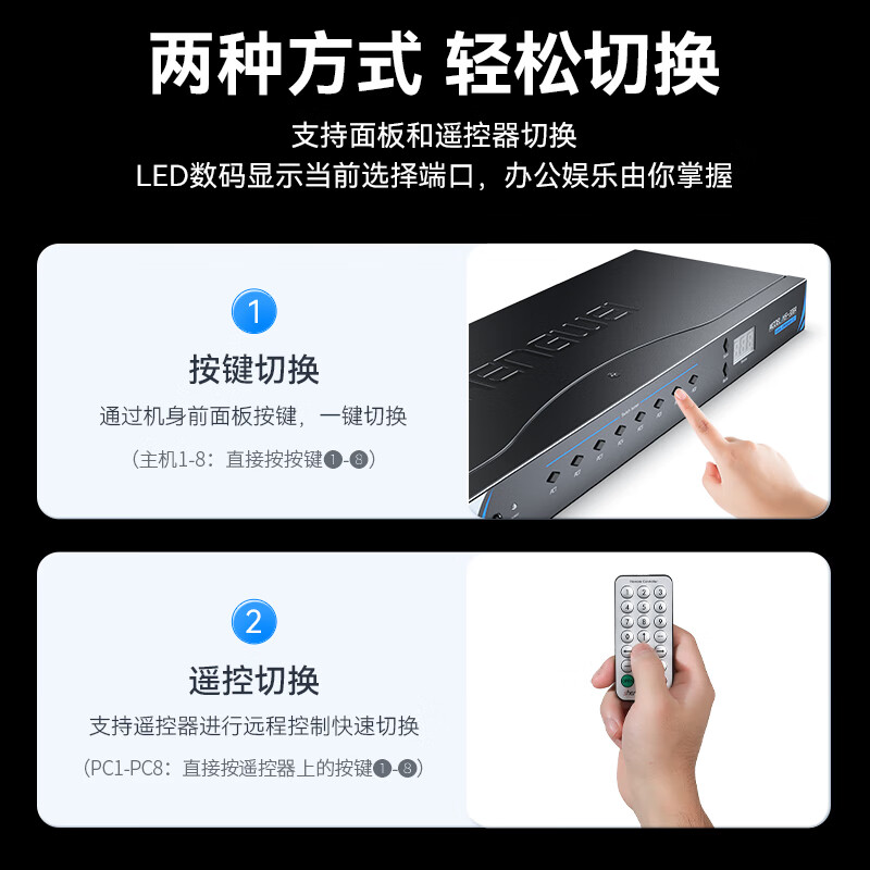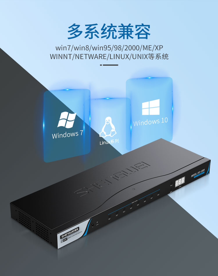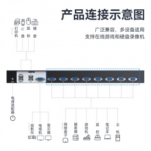 適用: 支持寬屏顯示器,分辨率高達1920*1440,送標配KVM線纜8套