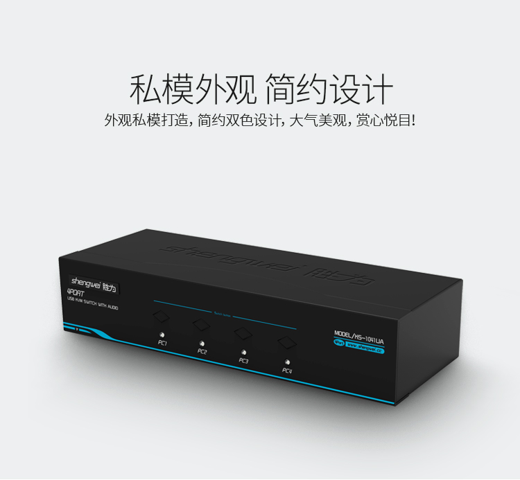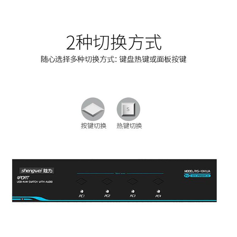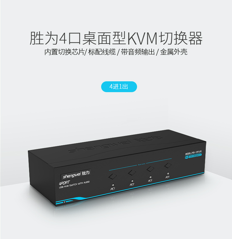 KVM自動切換器 USB鍵盤鼠標 勝為4口配線帶音頻 四進一出KS-1041UA