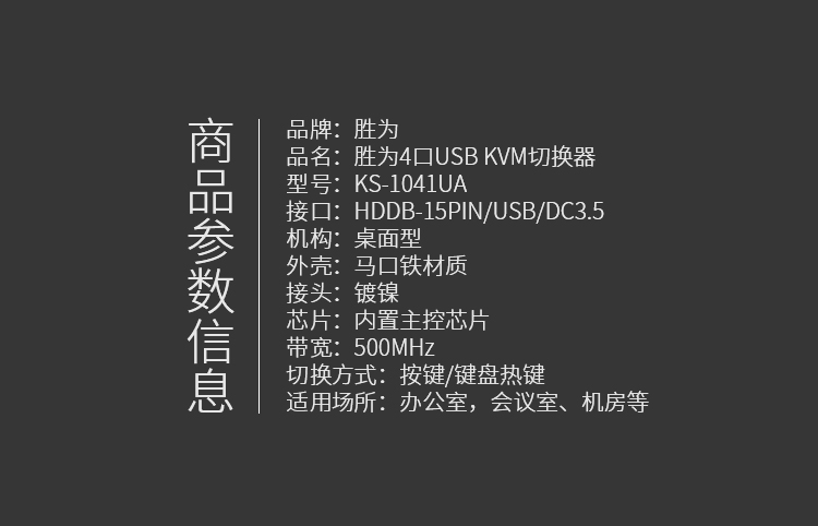規(guī)格:支持寬屏顯示器,分辨率高達1920*1440,送標配KVM線纜4條