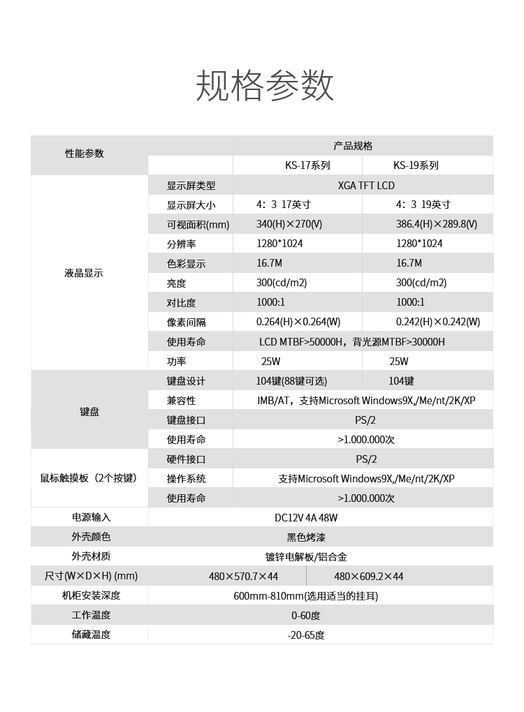 外殼:四合一KVM一體機,17英寸屏,鐵殼,