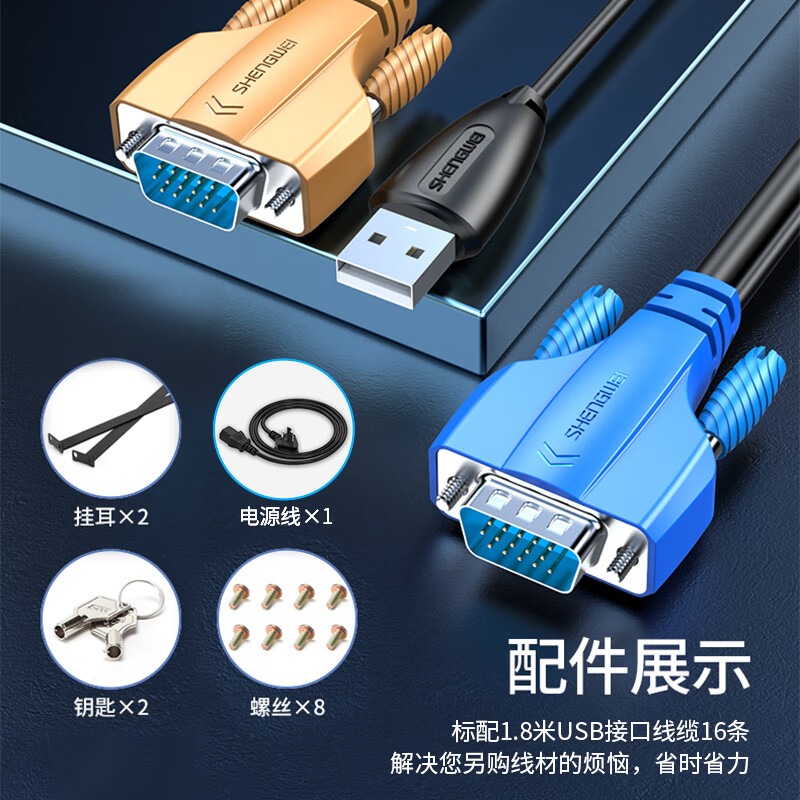 KVM切換器16口 帶19英寸LCD顯示器配線 勝為 16進(jìn)1出 KS-1916LCD