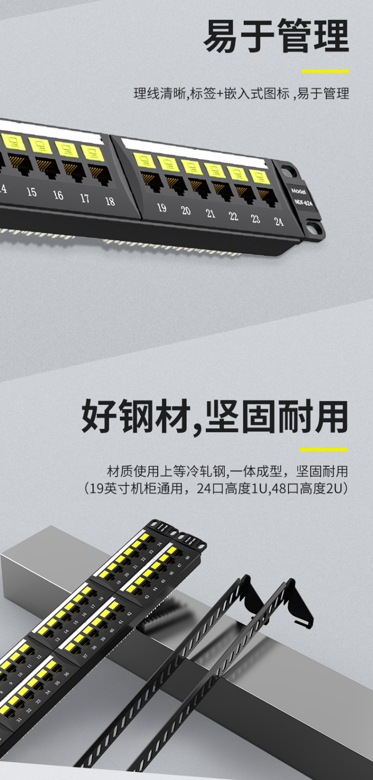 規(guī)格:19英寸 1U CAT6 24口 金針: