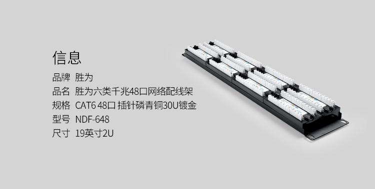 勝為六類千兆網(wǎng)絡(luò)配線架 工程級(jí)48口 2U機(jī)架式高端非屏蔽6類機(jī)柜網(wǎng)線配線架 NDF-648