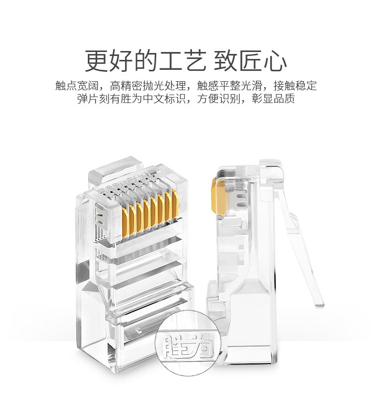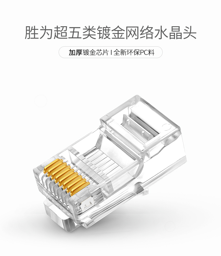 超五類(lèi)水晶頭 100個(gè)/盒 勝為鍍金RJ45純銅網(wǎng)絡(luò)網(wǎng)線(xiàn)接頭 cat5e非屏蔽 RCB-1100