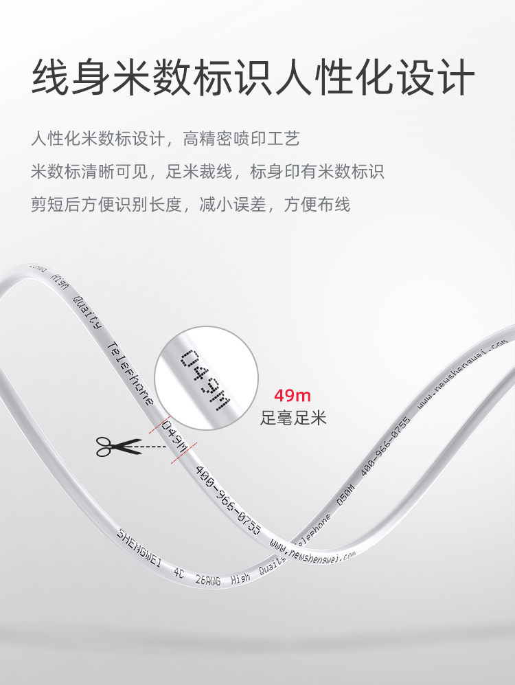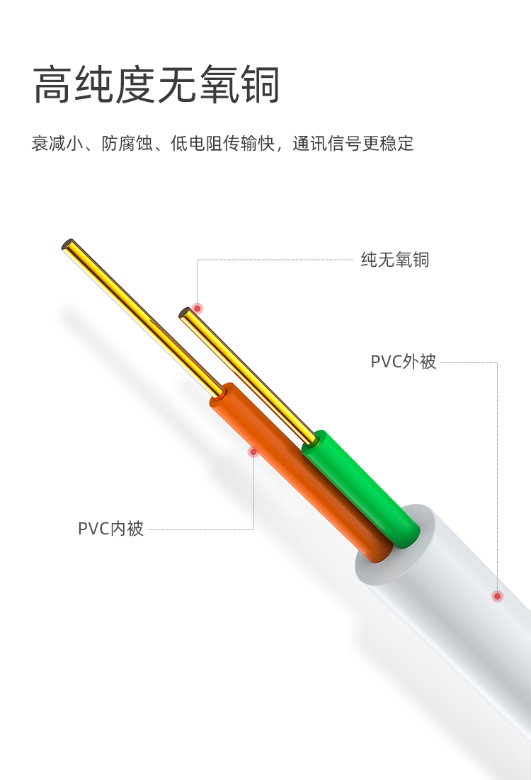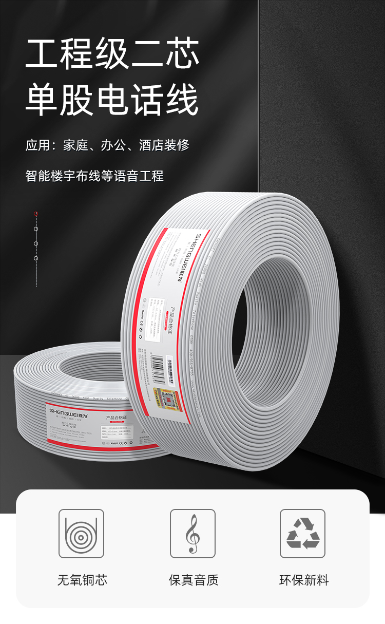 電話線2芯單股無(wú)氧銅 勝為0.4mm座機(jī)/傳真機(jī)電話線200米 TEC-1200