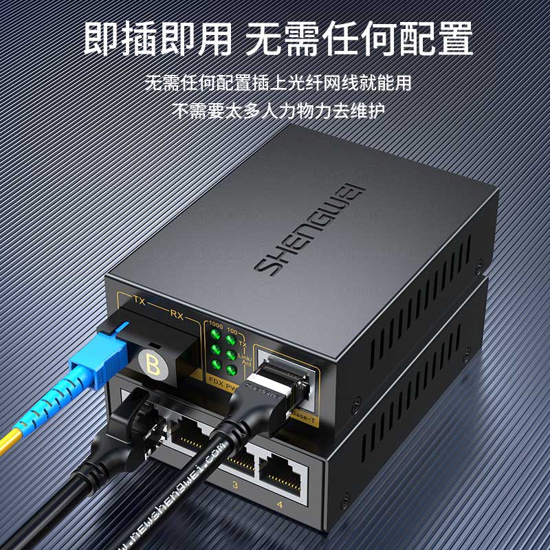 1光4電千兆單模單纖 一對裝 勝為SC口光纖收發(fā)器 3KM BGH104TX