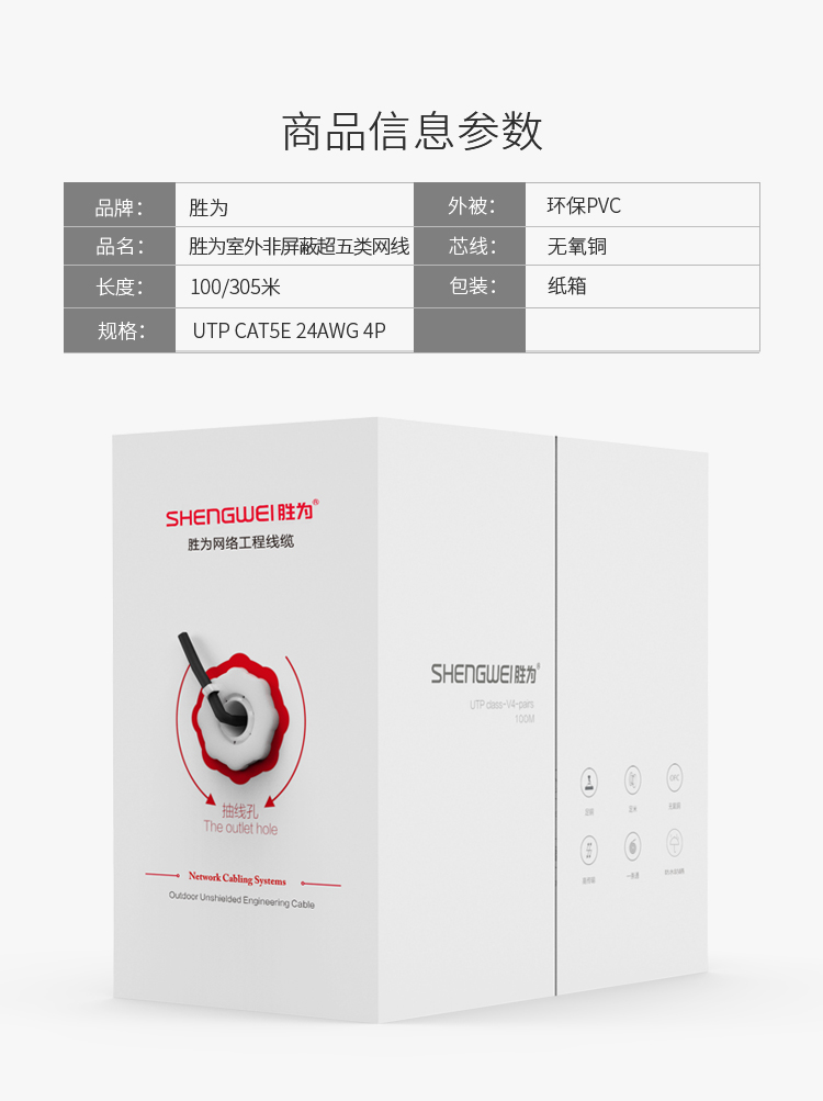 品名:勝為室外非屏蔽超五類網(wǎng)線