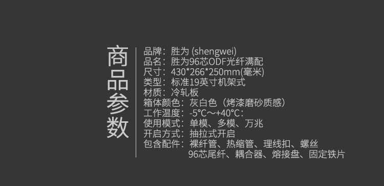 包含配件:裸纖管、熱縮管、理線扣、螺絲、96芯尾纖、耦合器、熔纖盤、固定鐵片訂購熱線:400-690-8010