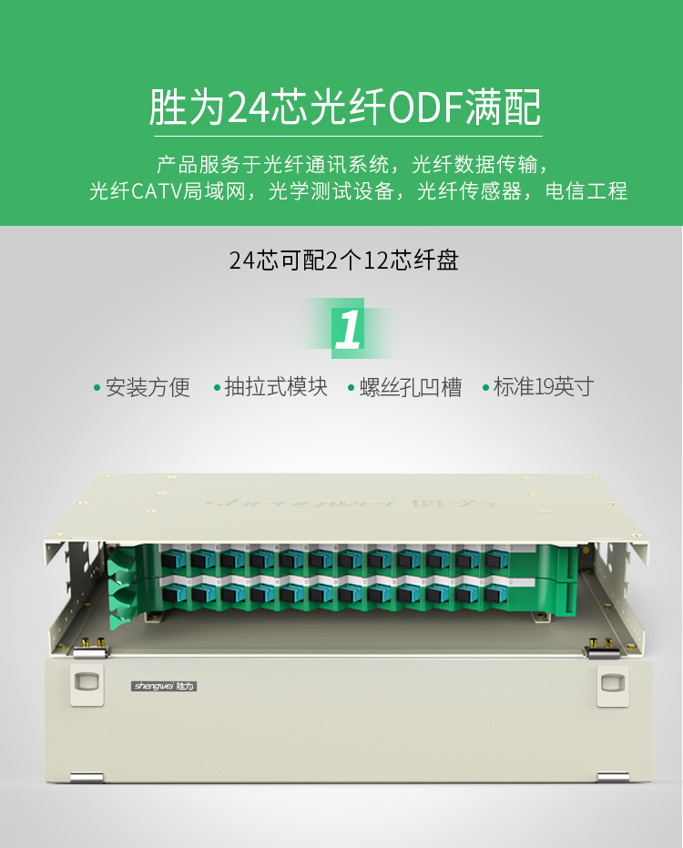 勝為24芯LC多模萬兆OM3滿配ODF光纖配線架 19英寸抽拉機架式1.2mm冷軋板 ODF-1024L-O