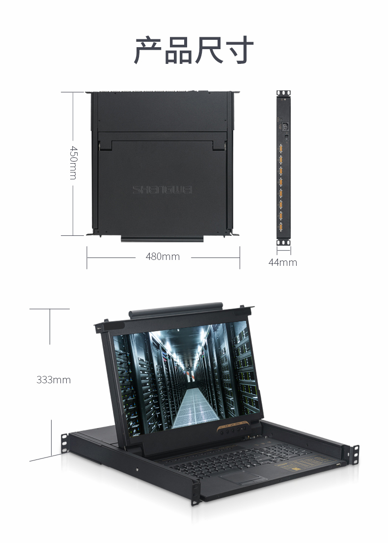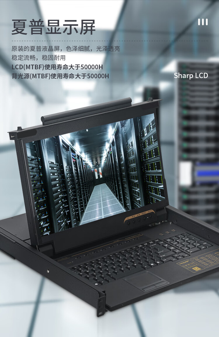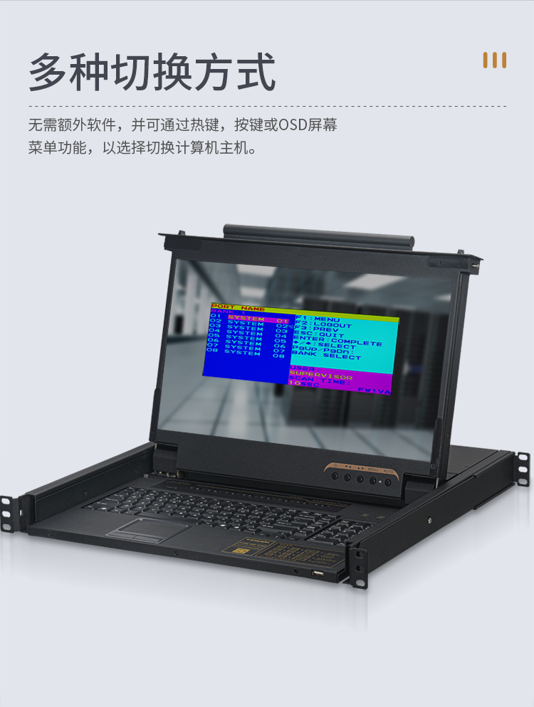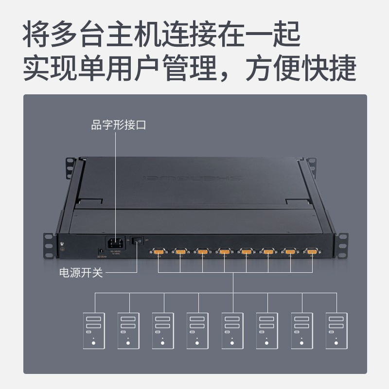 數(shù)字KVM切換器8口 17.3英寸高清寬屏LCD顯示器配VGA線 8進(jìn)一出機(jī)架式電腦轉(zhuǎn)換器 KS-2708L